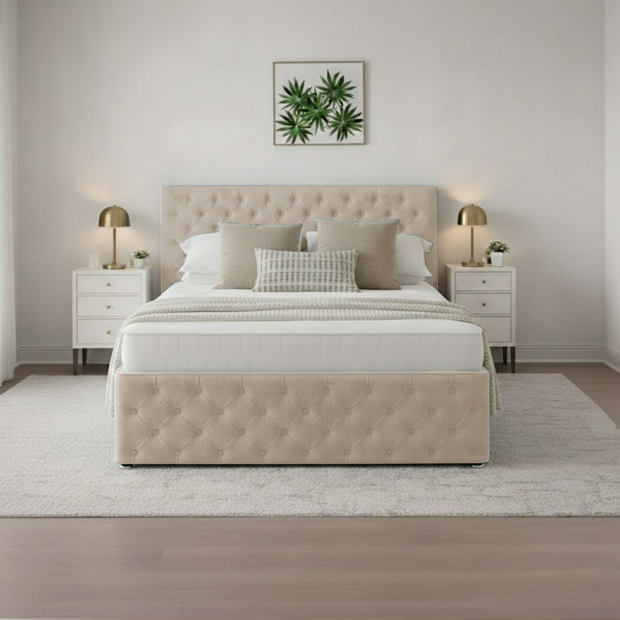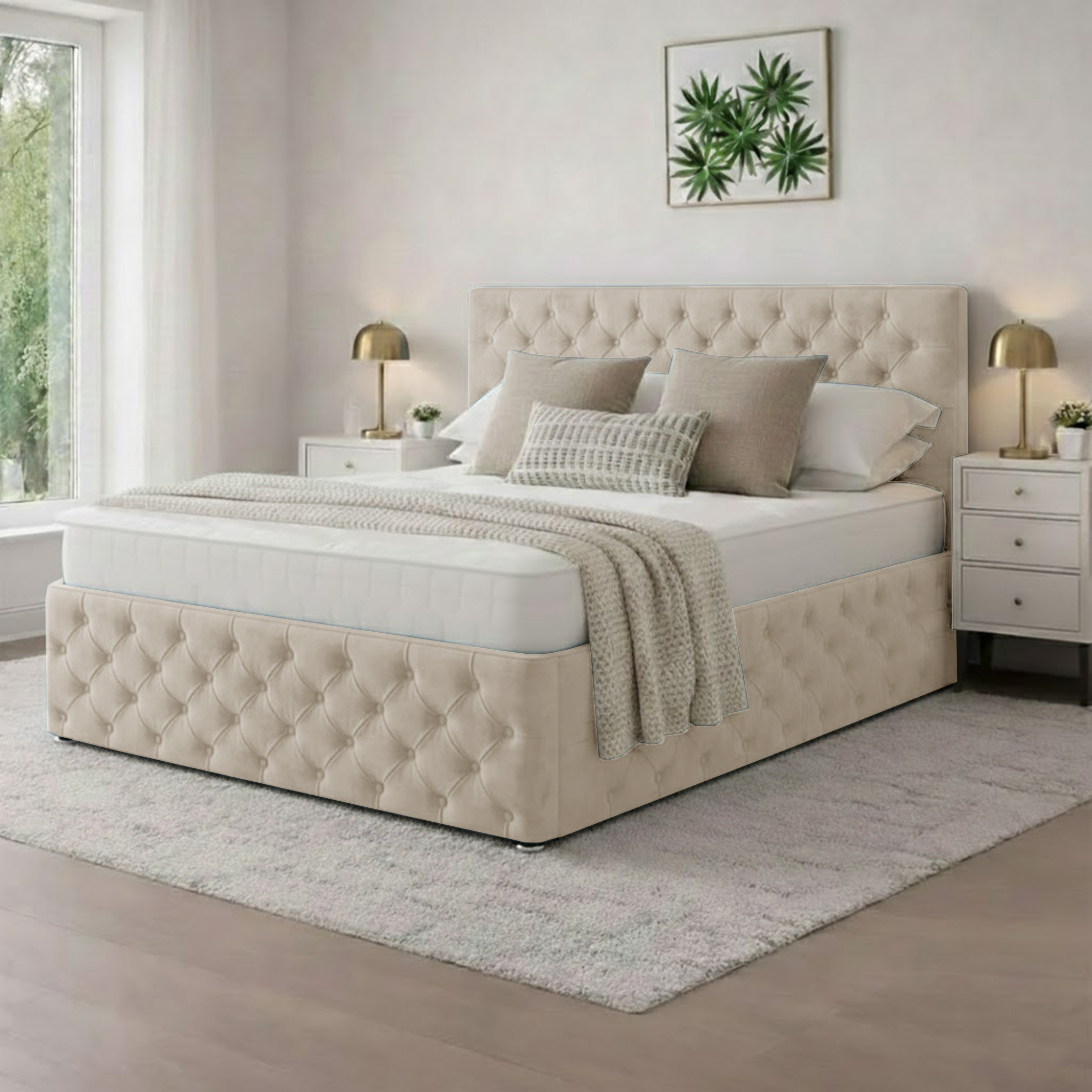 Luxury Sleigh Bed – Cream Naple Chesterfield Sleigh Bed