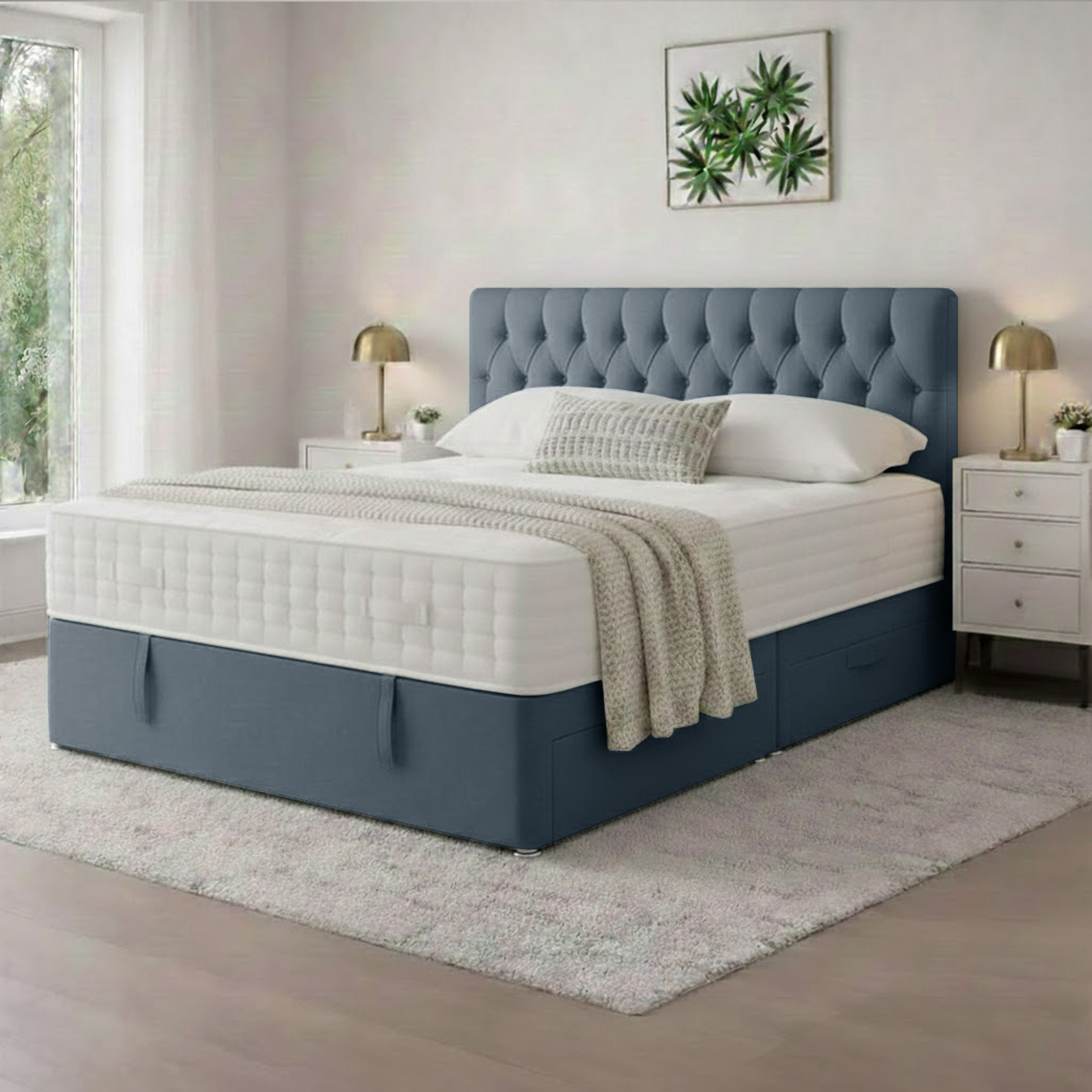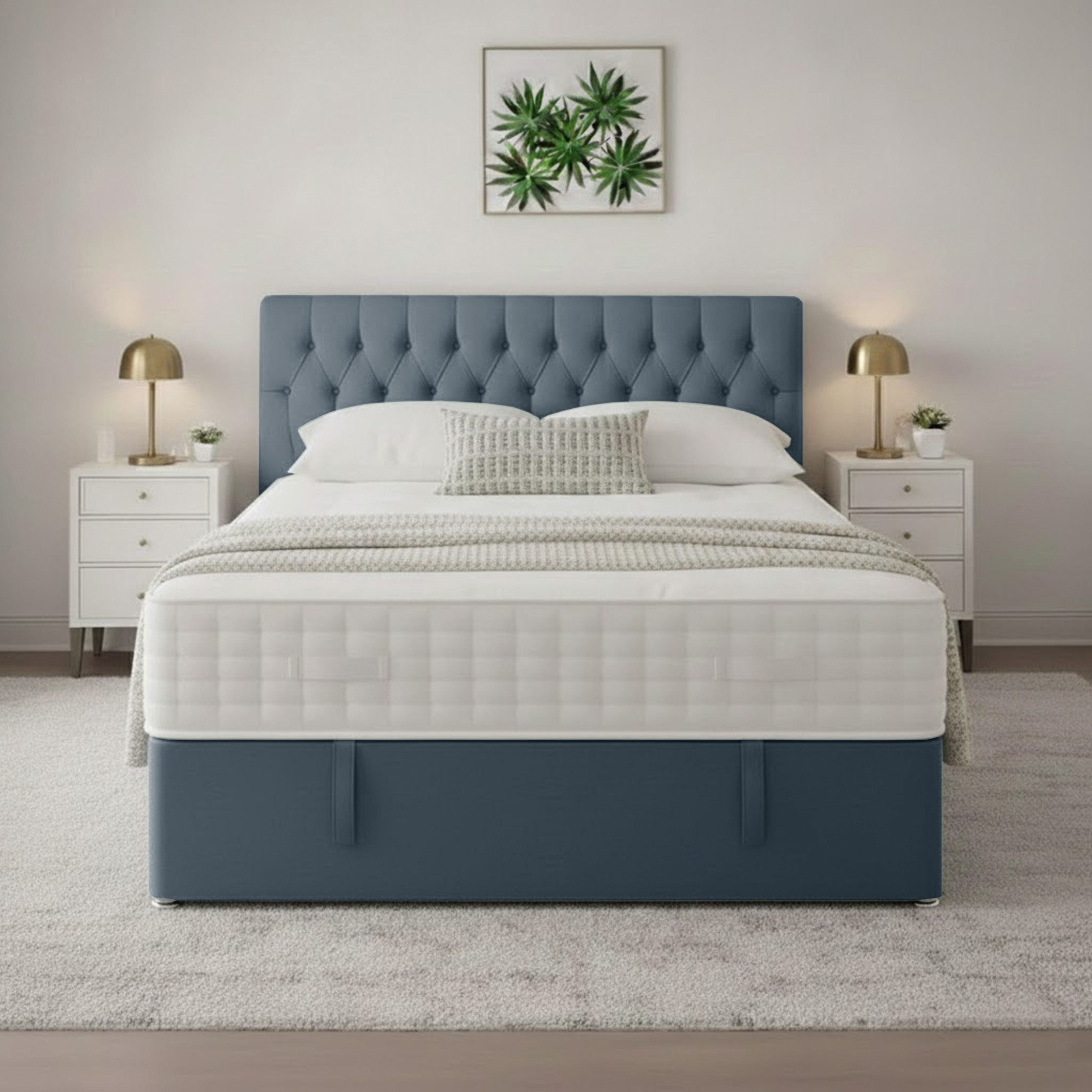 Selini Plush Velvet Luxury Bed | Modern Bed with 10″ memory foam spring mattress | Bed with 48″ headboard and 20″ footboard
