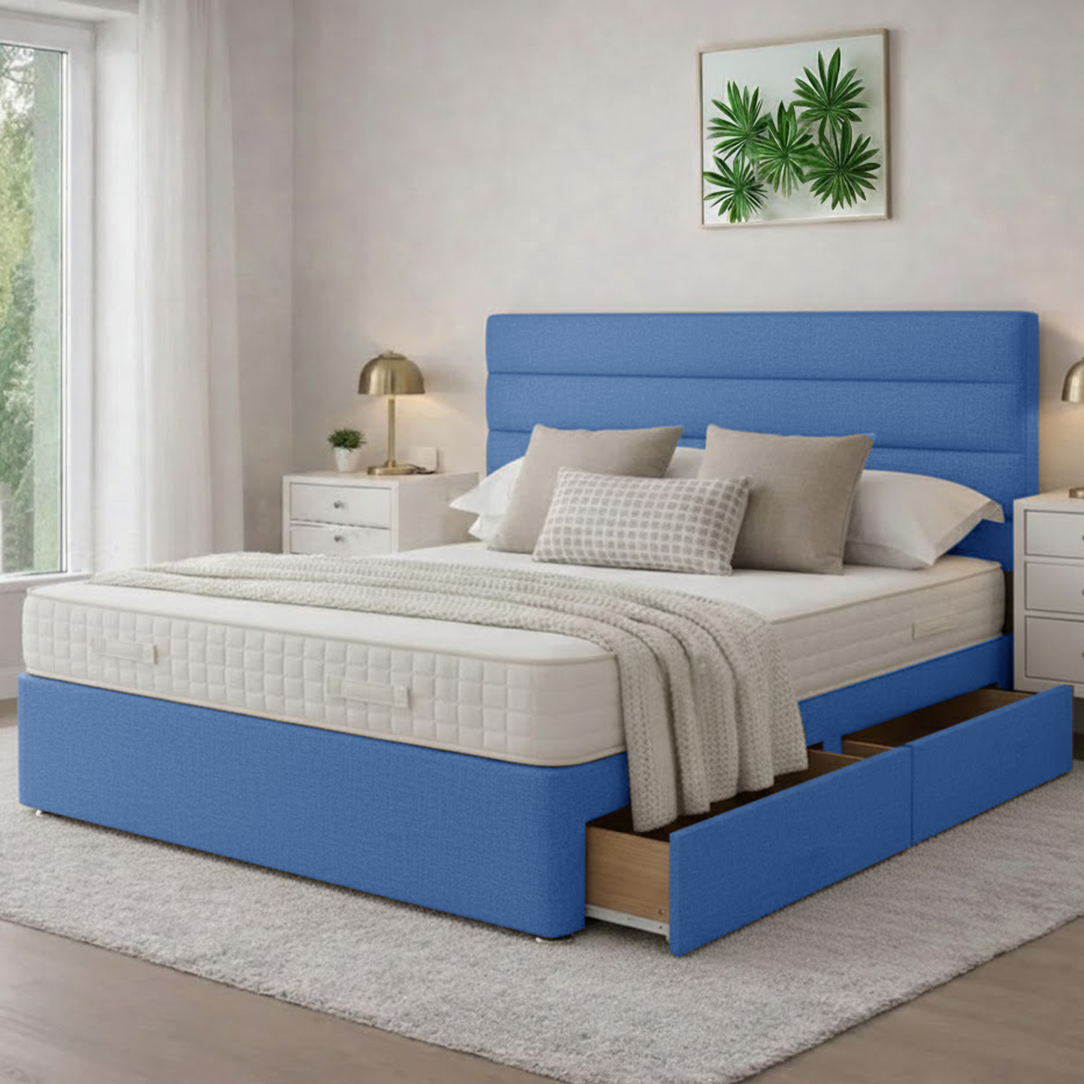 WHITE ROSE Divan bed set with strut 20″ matching headboard 20″ | medium to firm open coil mattress 10″